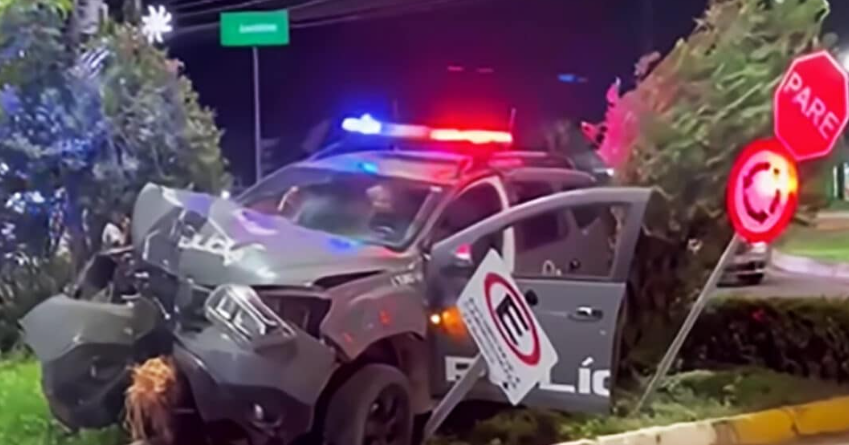 Viatura da Polícia Militar se envolve em colisão no centro e três policiais são atendidos